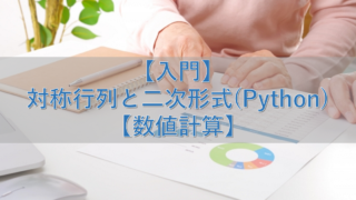 数値計算 【入門】対称行列と二次形式(Python)【数値計算】 二次形式の多項式表現と行列表現の計算をPythonで実施。3Dグラフを表示する際は、projection='3d'が必要。plot_wireframeでワイヤーフレームでグラフ表示ができる。 2023.04.23 数値計算