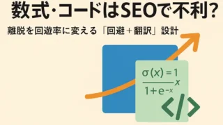 SEO 数式・コードはSEOで不利?離脱を回遊率に変える「回避+翻訳」設計(WordPress対応) 数式やコードは離脱を増やしやすくSEO的に避けられがち。ですが「読み飛ばしOK」の回避と、人間語への翻訳、WordPress詳細ブロックの退避で回遊率を改善できます。図と実験モデルで解説。 2026.03.22 SEO