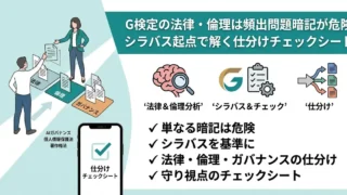 G検定の法律・倫理は、頻出問題の丸暗記だけでは危険です。シラバスを基準に、法律・倫理・ガバナンスを仕分ける考え方と、守り視点のチェックシート、例題での思考プロセスを整理します。