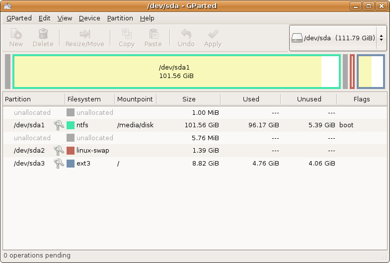 そいえば、例のコマンドは3つのパーティションを作ったわけだけど、