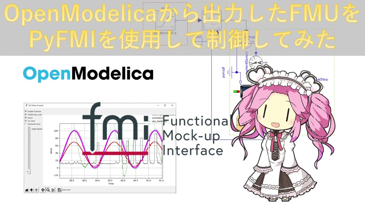 ![tkinter、FMU、クラス、sin波入力、CPU負荷表示、リアルタイム描画、8秒pause、拡大、Enable Scale bar、Enable Cpu Load、pause、sin wave、Sawtooth wave、target Speed、target[rad/s]、voltage[V]、speed[rad/s]、loadTorqueStep.tau[N m]、current[A]、cpu_load[ms]](https://www.simulationroom999.com/blog/wp-content/uploads/2021/09/03_tkinterFMU動作状態クラス化版sin波入力CPU負荷表示付き8秒pause拡大-1024x608.png)