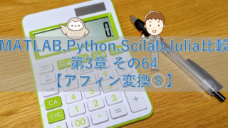 数値計算 MATLAB,Python,Scilab,Julia比較 第3章 その60【アフィン変換④】 アフィン変換を実施する上での問題を確認。空間不足問題とまだら模様問題。空間不足問題に対しては、キャンパス拡張にて対策。まだら模様問題は、別途原因と対策を説明予定。 2023.10.09 数値計算